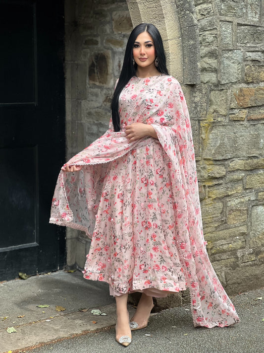PEACHY PINK FLORAL 3PC DRESS-DELIVERY 3 WKS