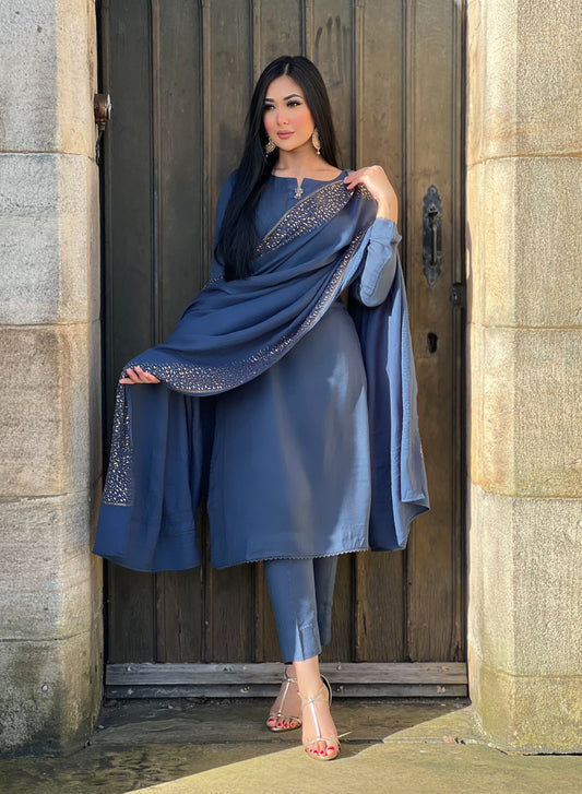 BLUE 3PC GEORGETTE DRESS-NEXT DAY DELIVERY AVAILBLE
