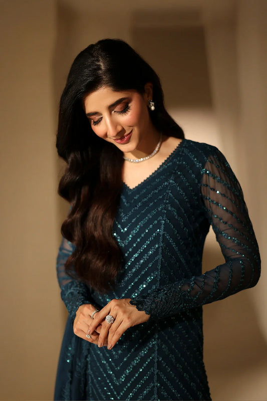 TEAL 3PC EMBROIDERED CHIFFON-DELIVERY 5 WEEKS