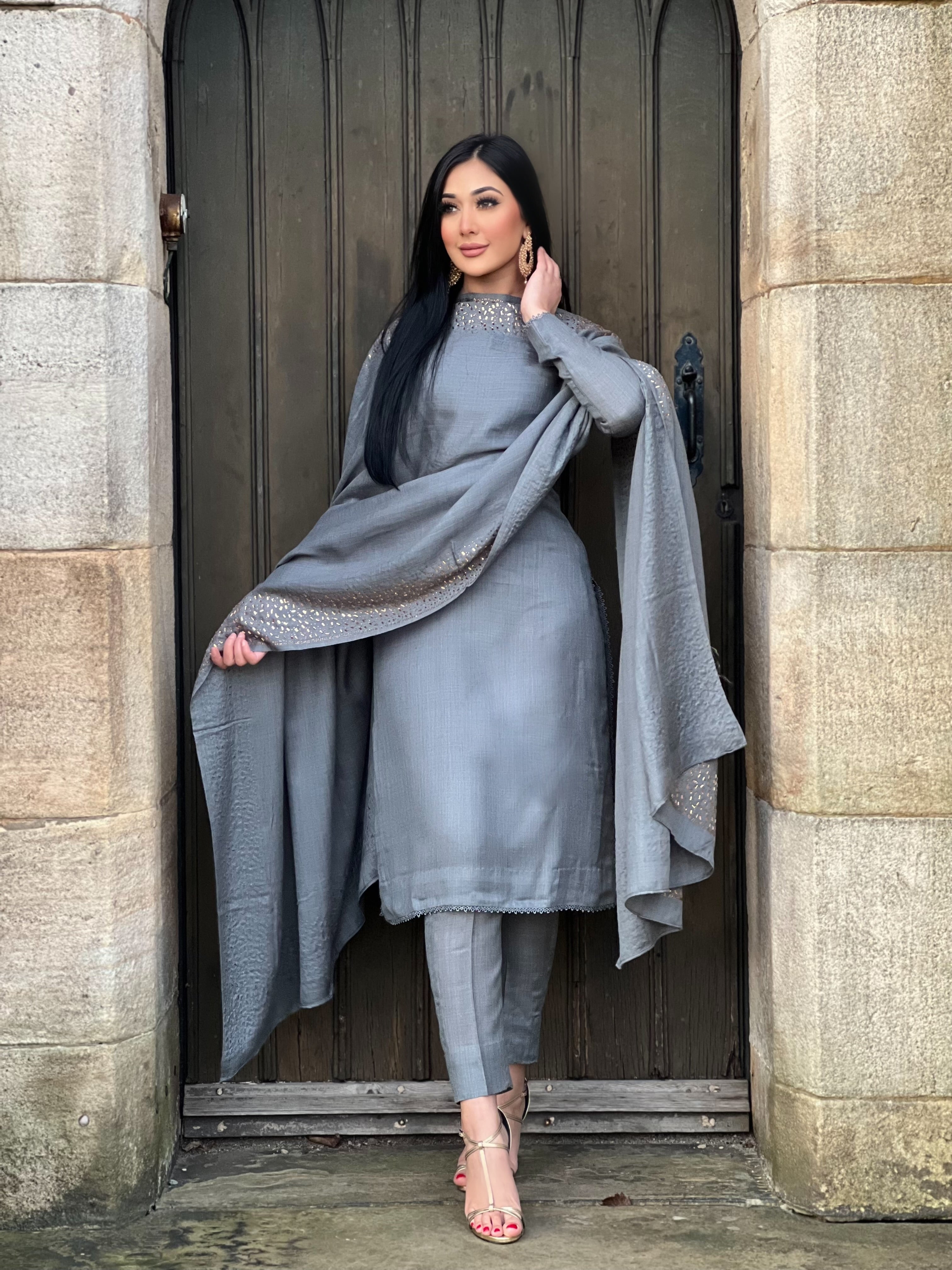 BLUE 3PC GEORGETTE DRESS-NEXT DAY DELIVERY AVAILBLE