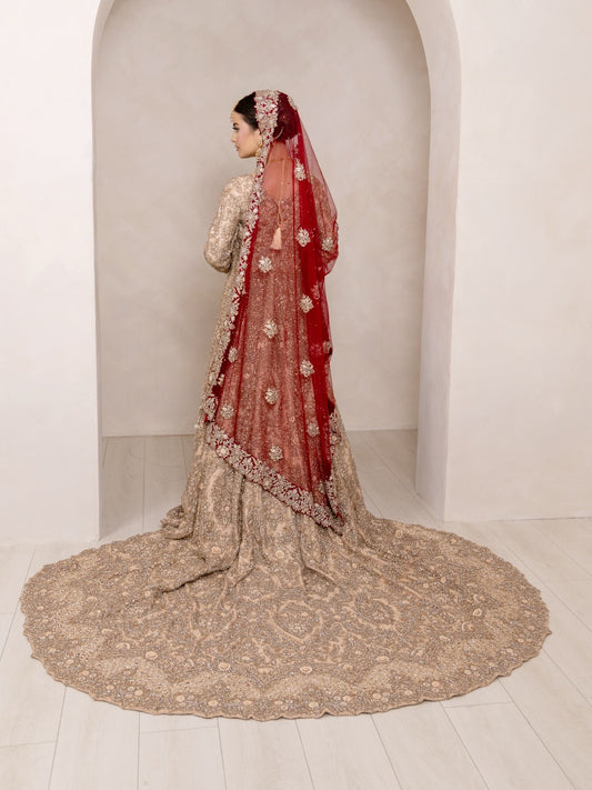 BRIDAL DRESS RED SCARF/BEIGH - 2/3 MONTHS DELIVERY