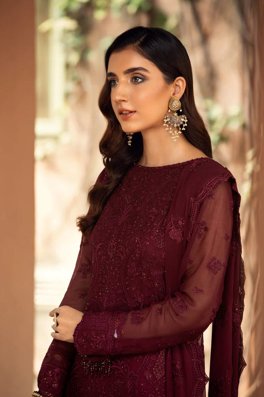 Embroidered Chiffon Rust - V14D02 - Aarmisha - Pre Order