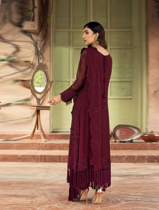 maroon 3pc luxury chiffon - PRE ORDER 6 WEEKS DELIVERY