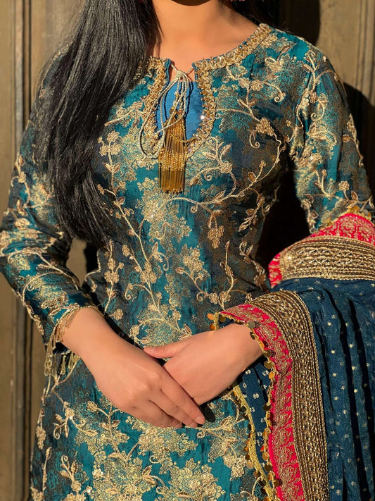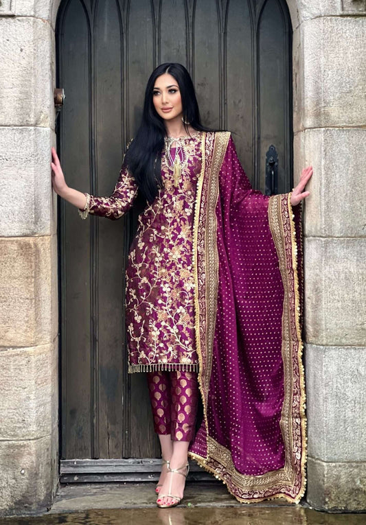 Izzza 3pc banarsi embroidered-PRE ORDER DELIVERY 6 WEEKS
