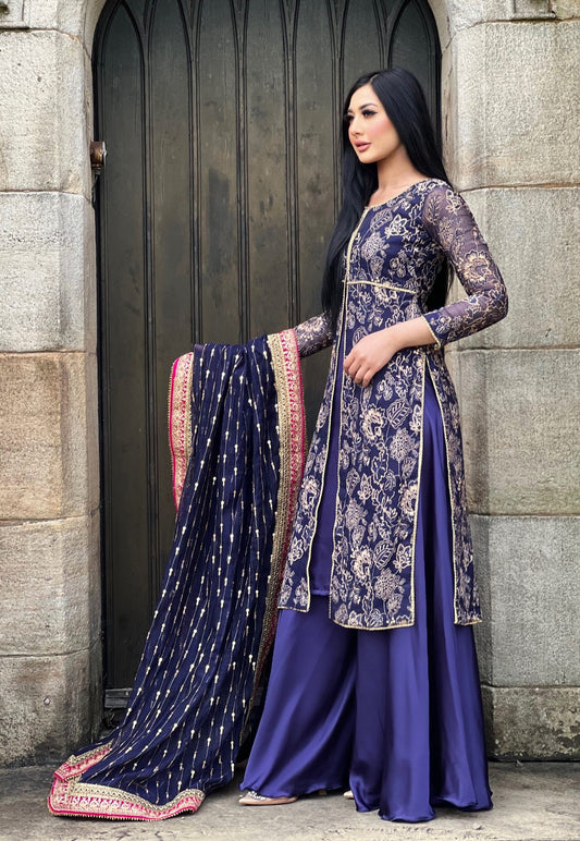 NAVY 3PC PLACHI SHARARA-PRE ORDER 8 WEEKS