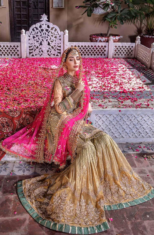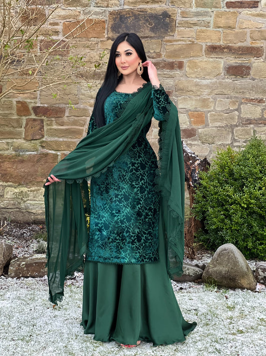 GREEN 3PC PLACHI SHARARA-PRE ORDER DELIVERY 8 WEEKS
