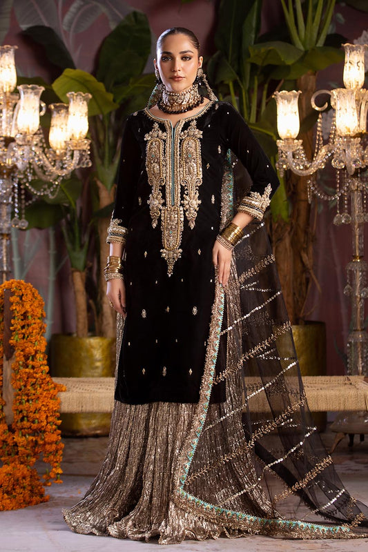 BLACK/GOLD 3PC VELVET SHARARA- DELIVERY 3/4 WEEKS