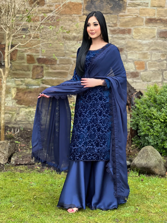 NAVY 3PC PLACHI SHARARA-PRE ORDER 8 WEEKS