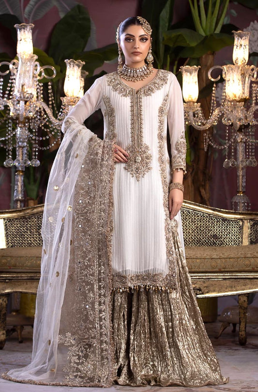 WHITE/GOLD 3PC SHARARA-3/4 WEEKS DELIVERY