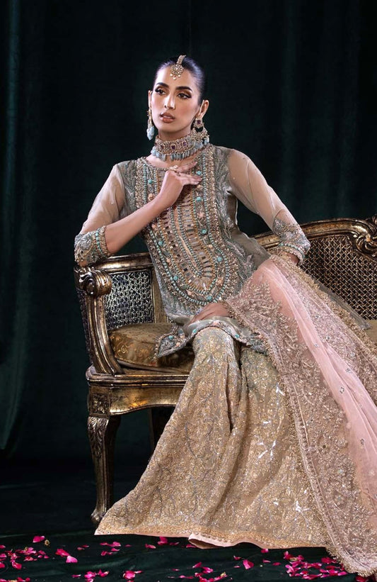 GREEN 3PC PLACHI SHARARA-PRE ORDER DELIVERY 8 WEEKS