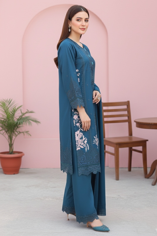 EMBROIDERED 3PC DHANAK-IMMEDIATE DLEIVERY